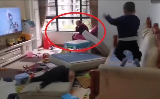 Người bà trông cháu nhưng lại bình thản ngồi ngoài ban công bấm điện thoại, để mặc hai bé trai nghịch ngợm, phá nhà cửa tan hoang.