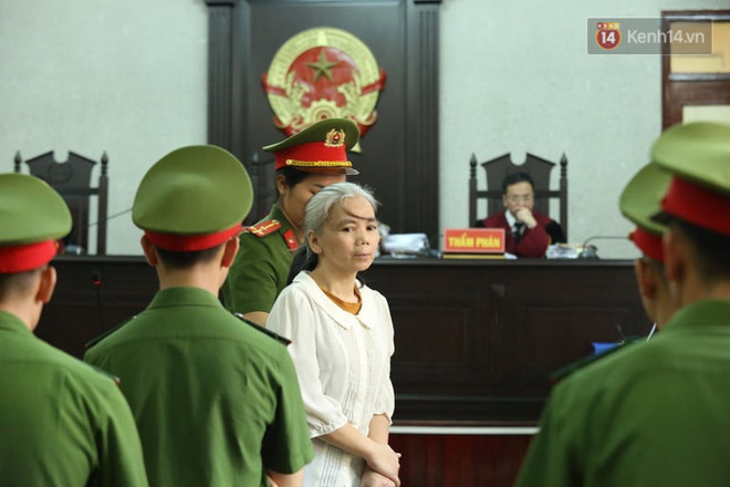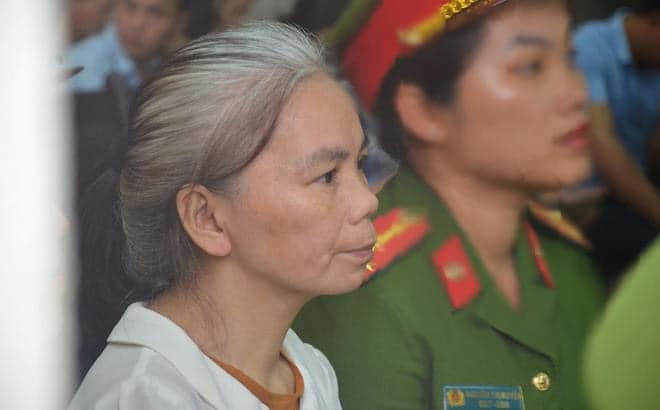 Bị cáo Bùi Thị Kim Thu với mái tóc bạc trắng khiến nhiều người bất ngờ